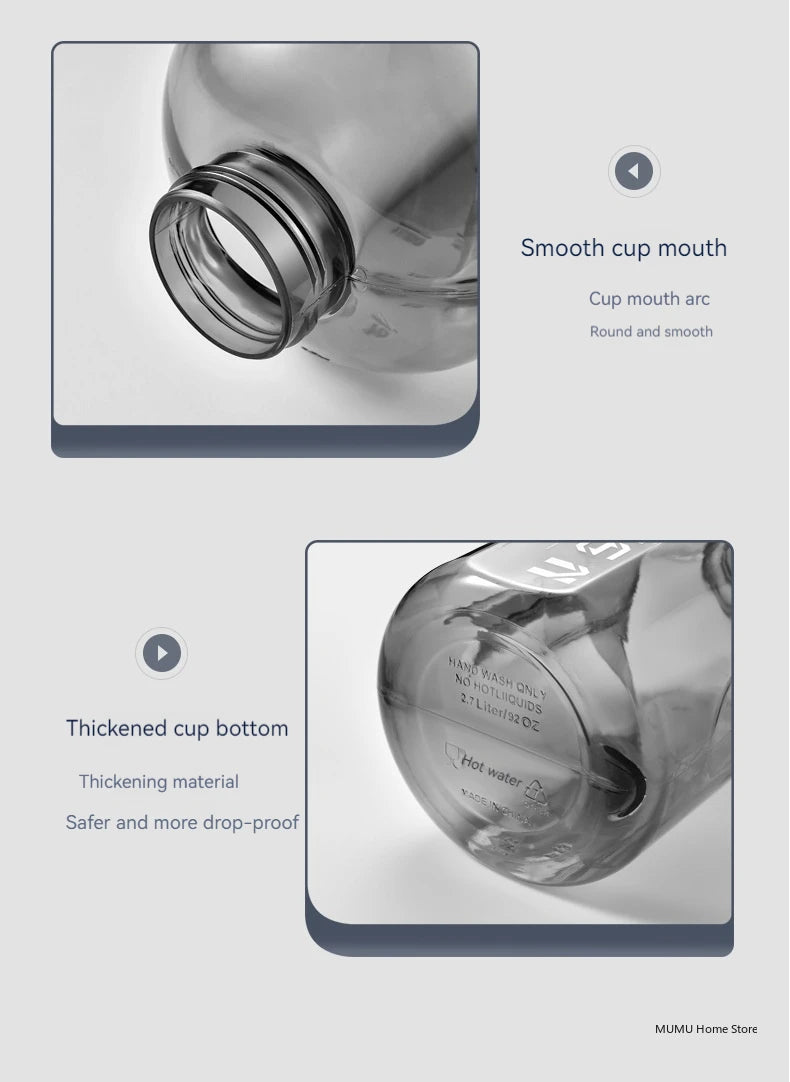 Bouteille d'Eau Sport Grande Capacité 2.7L – Gourde Fitness